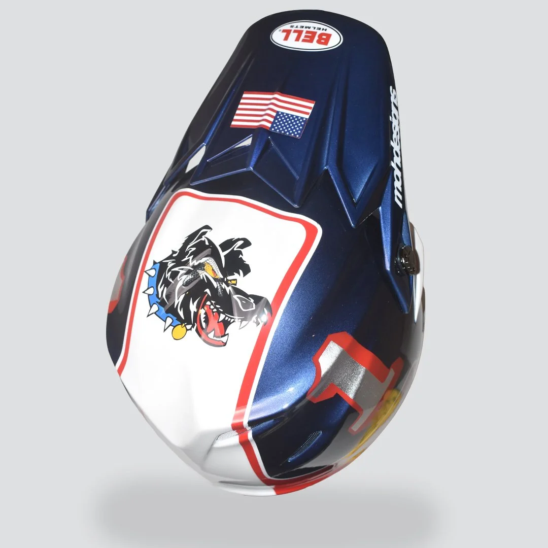 We’re all about the details and making sure you’re happy with the final product. Using the latest tools and materials, we make sure every design is not only durable but also keeps its bright colors and personality. Our roots in Grants Pass keep us inspired to connect with the local moto community and keep pushing what helmet art can be.